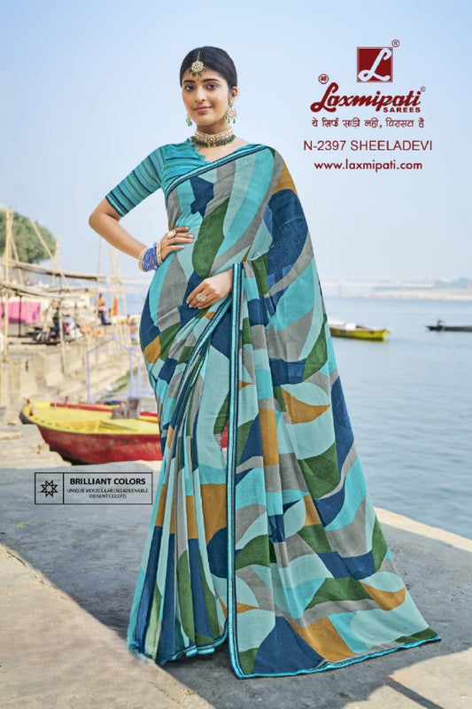 Laxmipati Printed Green Georgette Saree (Sitaphal, N-2722)