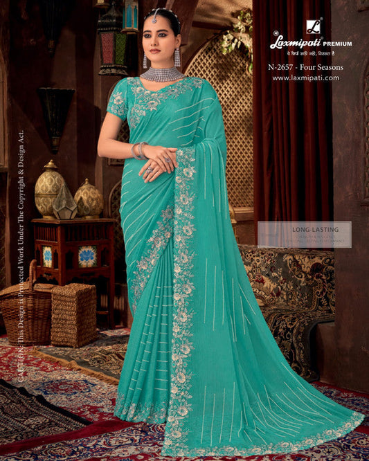 Laxmipati Firki-3 Blue Sparkle Chiffon Saree (Blue, N-2657)