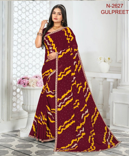 Laxmipati Gulpreet Maroon Chiffon Saree (Maroon, N-2627-D)