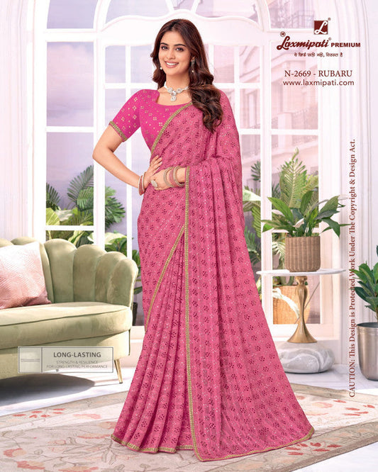 Laxmipati Gulpreet Pink Chiffon Saree (Pink, N-2627-A)