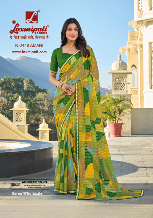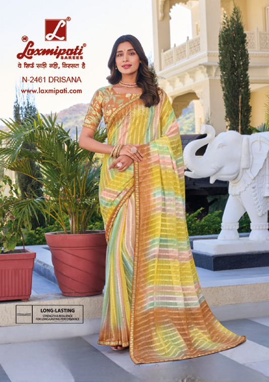 Laxmipati Rang Panchami Multicolor Chiffon Saree (Multicolor, N-2461)