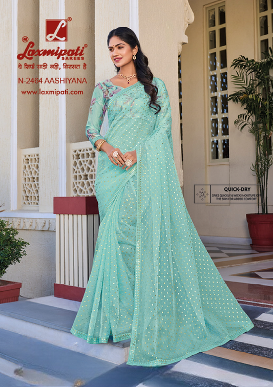 Laxmipati Rang Panchami Green Sparkle Chiffon Saree (Green, N-2463)