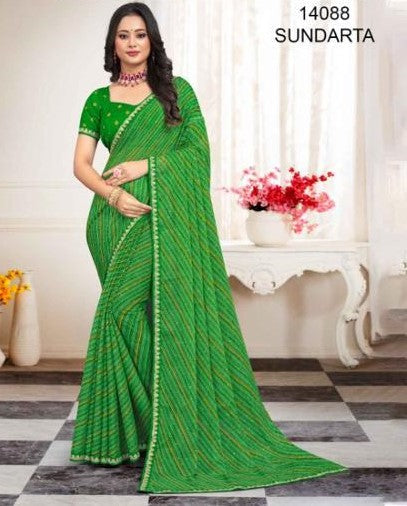 Laxmipati Sundarta-7 Green Chiffon Saree (Green, 14088)