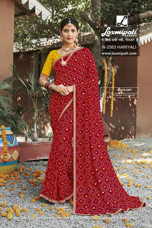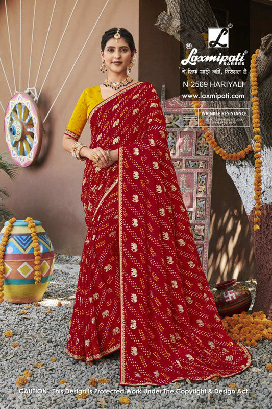 Laxmipati Rajwadi Red Moss Chiffon Saree (Red, N-2565)