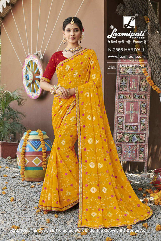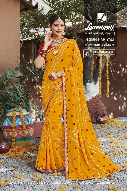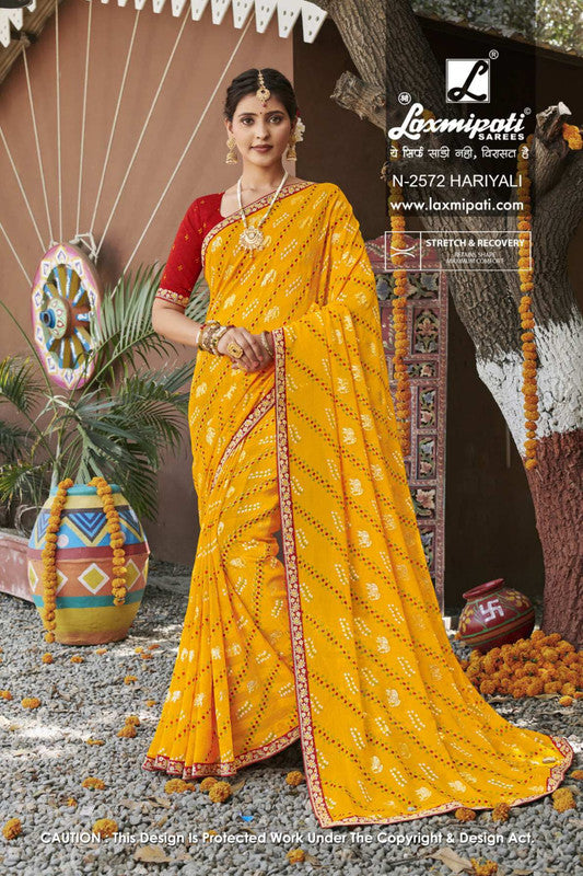 Laxmipati Rajwadi Yellow Moss Chiffon Saree (Yellow, N-2566)