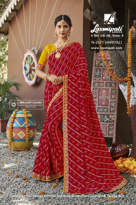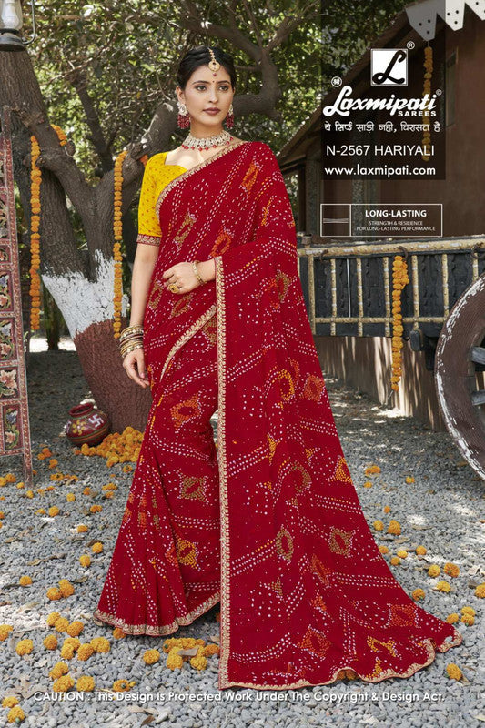 Laxmipati Rajwadi Red Chiffon Saree (Red, N-2573)