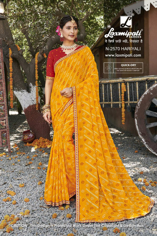 Laxmipati Rajwadi Yellow Moss Chiffon Saree (Yellow, N-2570)