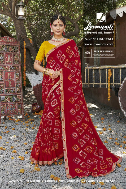 Laxmipati Rajwadi Red Moss Chiffon Saree (Red, N-2571)