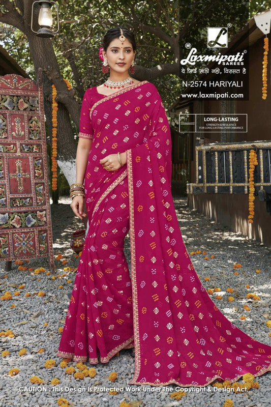 Laxmipati Rajwadi Pink Chiffon Saree (Pink, N-2574)