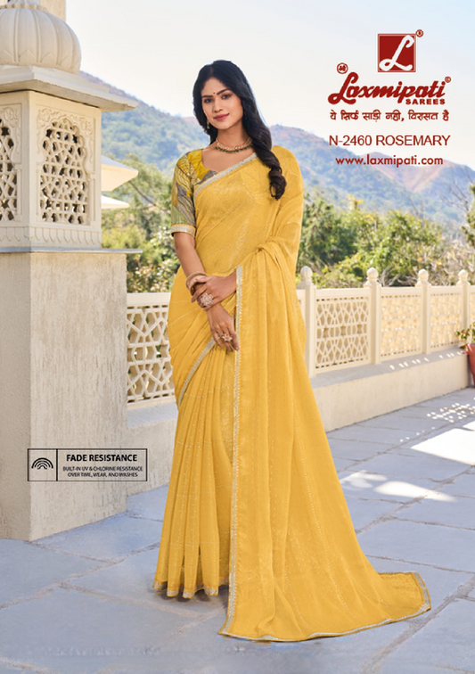 Laxmipati Rang Panchami Mustard Sparkle Chiffon Saree (Mustard, N-2460)