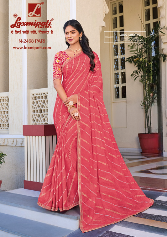Laxmipati Rang Panchami Multicolor Chiffon Saree (Multicolor, N-2461)