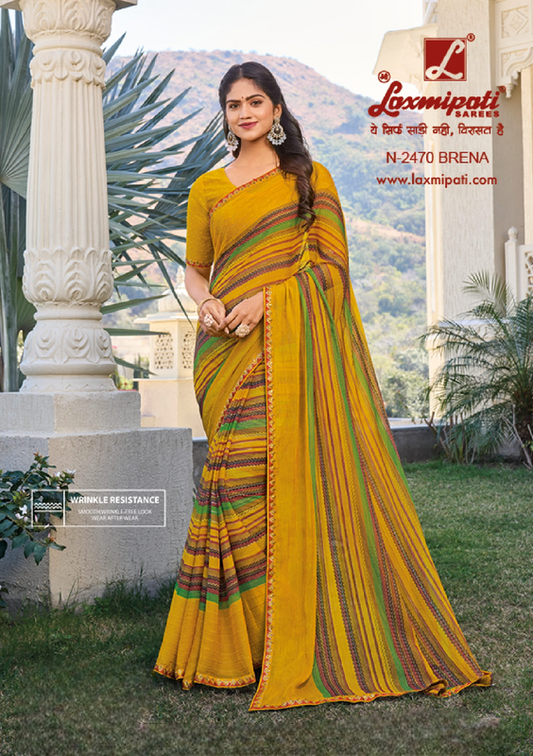 Laxmipati Rang Panchami Mustard Chiffon Saree (Mustard, N-2462)
