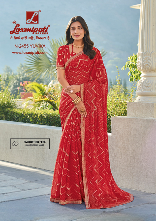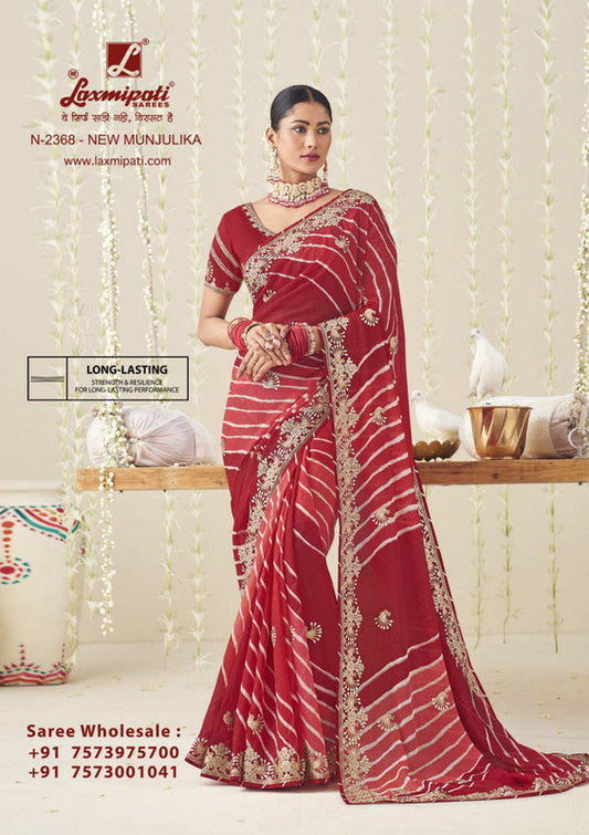 Laxmipati Sundarta-8 Red Chiffon Saree (Red, 13760-C)