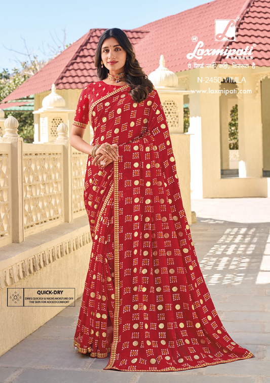 Laxmipati Mala Red Georgette Saree (Red, N-2619)