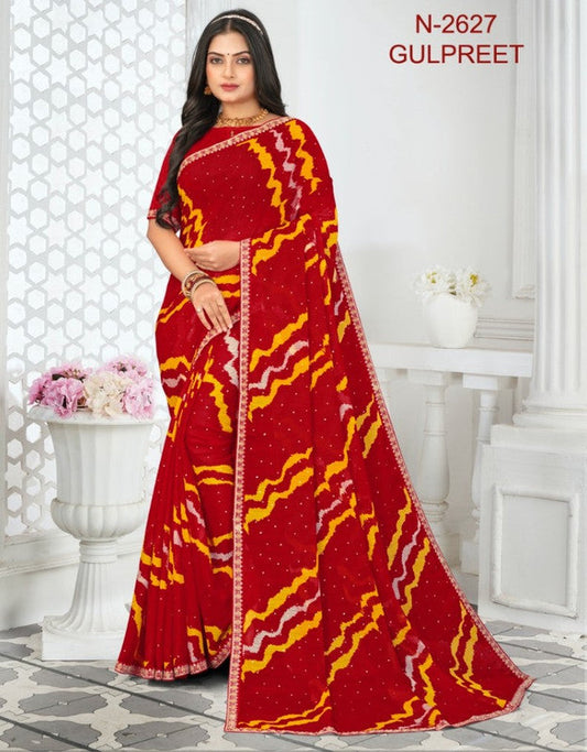 Laxmipati Gulpreet Red Chiffon Saree (Red, N-2627-F)