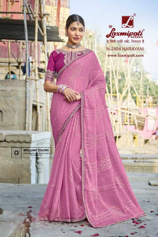 Laxmipati Parampara Pink Silk Chiffon Saree (Pink, N-2404)