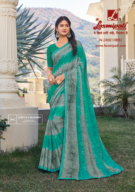 Laxmipati Sundarta-8 Green Chiffon Saree (Green, 13760-L)