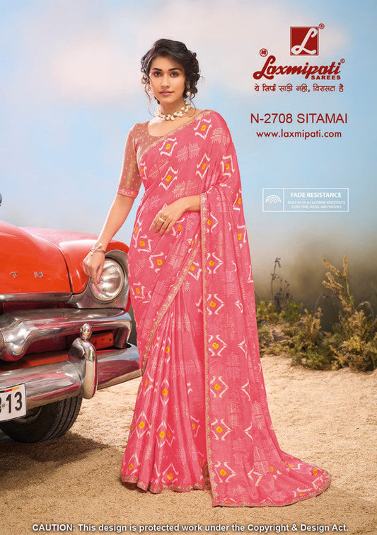 Laxmipati Baarish pink Silk Chiffon Saree (pink, N-2708)