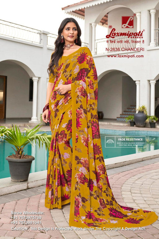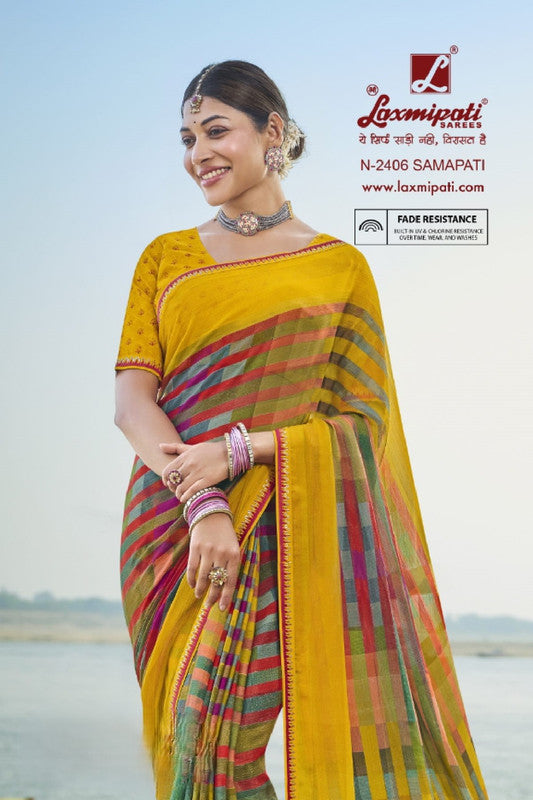 Laxmipati Sundarta-8 Yellow Chiffon Saree (Yellow, 13760-B)