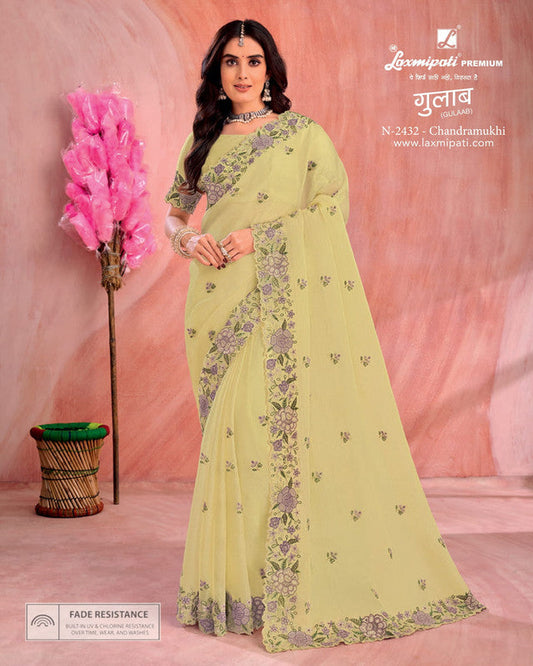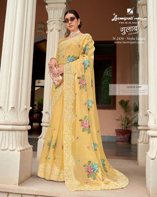 Laxmipati Gulaab Yellow Jimmy Choo Saree (Yellow, N-2436)