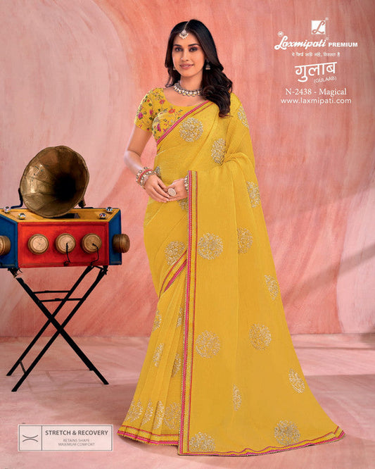 Laxmipati Nazakat Yellow Sparkle Chiffon Saree (Yellow, N-2367)